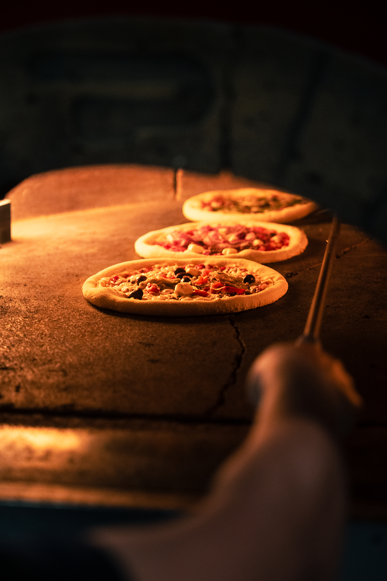 Pancetta, saucisse, calabrese épicé, oignons rouges et mozzarella